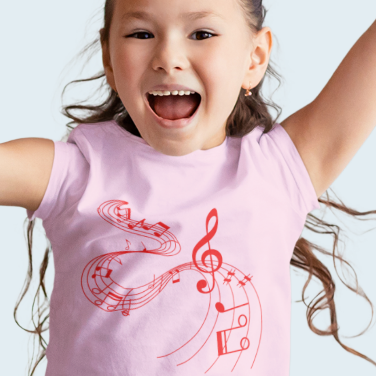 Cotton Pink T-shirt With MUSICAL NOTES Design in Red.
