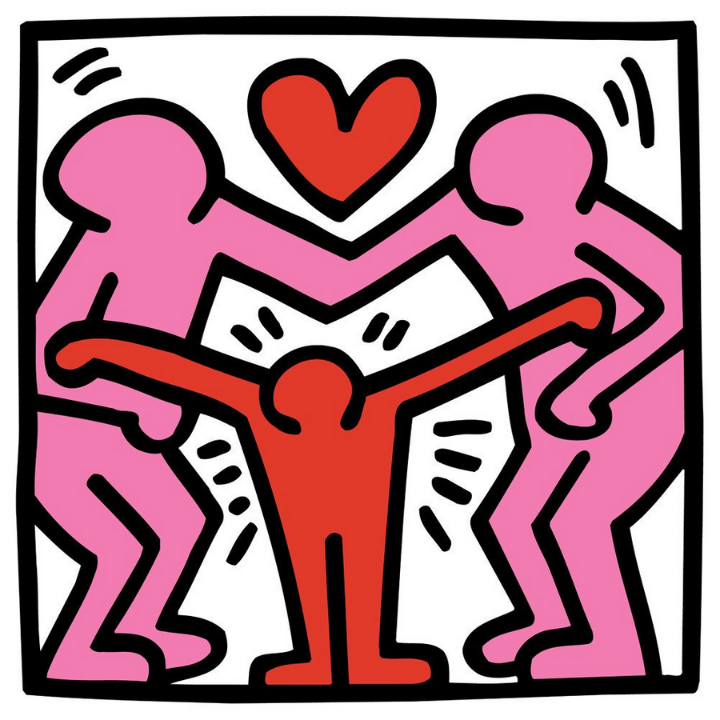 I will guide your child through the process of creating their own unique painting or drawing inspired by Keith Haring's Untitled (Family) art work.
